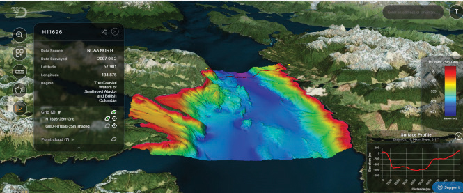 Managing marine data is a significant challenge for surveyors, since it spans customers, geographies, sensor types and time, and requires vast amounts of storage. With a shift to cloud-based computing and remote data management, centralized physical data storage is no longer relevant. Traditionally, the final deliverable is mailed to a customer on a hard drive to compile a full project data volume. This is time-consuming and insecure and eats into tight deadlines. In the long term, the data can be lost or moved to a company network, where it can be difficult to find. Survey companies have also relied on providing weekly updates to their customers via PowerPoint slides and PDFs. From a customer perspective, these formats lack the context and immersive visualization capabilities that enable customers to view the data from different perspectives and in geographic relation to other data sets such as satellite imagery, nautical charts and terrestrial Lidar.